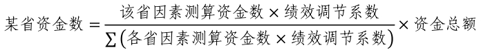 注:除党中央、国务院临时确定的重点事项,以及对农(牧、渔)民直接补贴、采取项目法管理、实行定额补助等任务资金外,其他资金测算原则上应根据绩效评价结果等合理设置调节系数进行适当调节,测算公式参考: